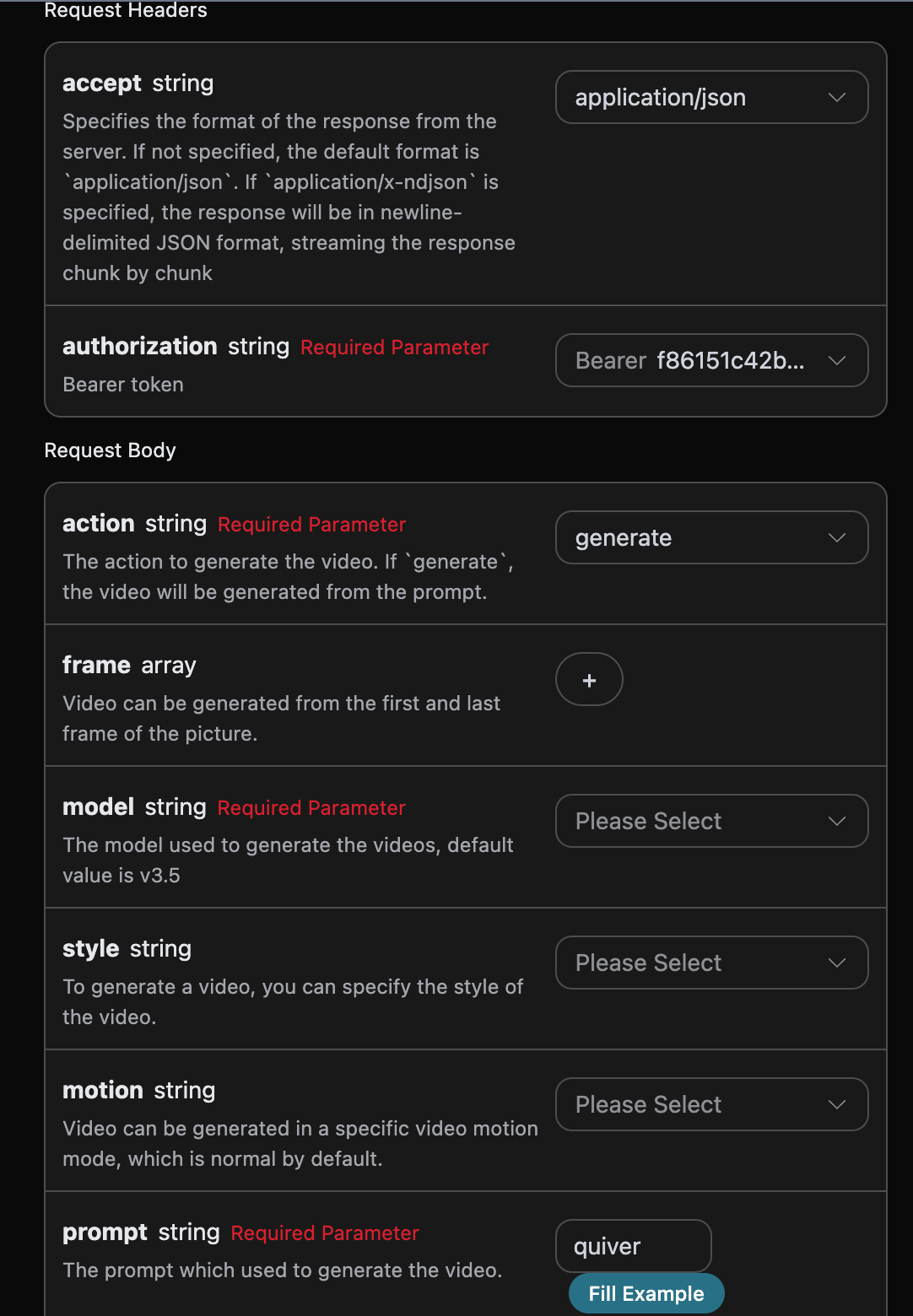 - model: The model used for this video generation task.