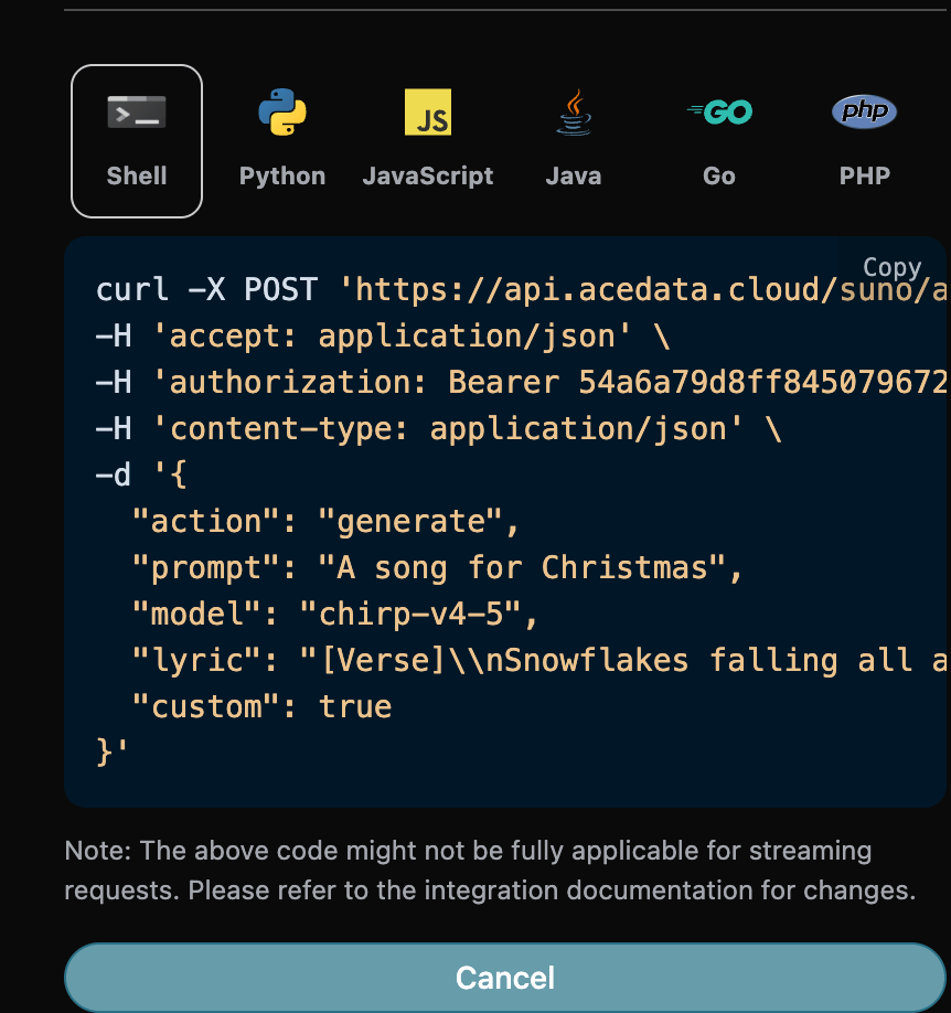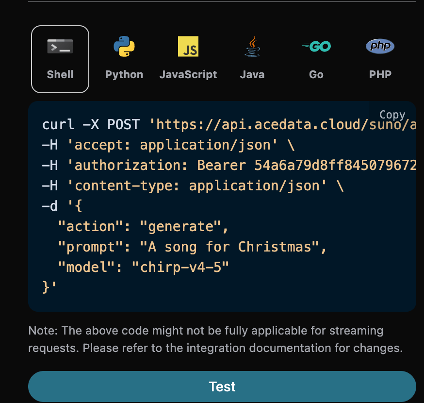 However, Suno does not officially provide an API. AceDataCloud offers a set of Suno APIs that simulate the official Suno interface, making it easy and quick to generate desired music.