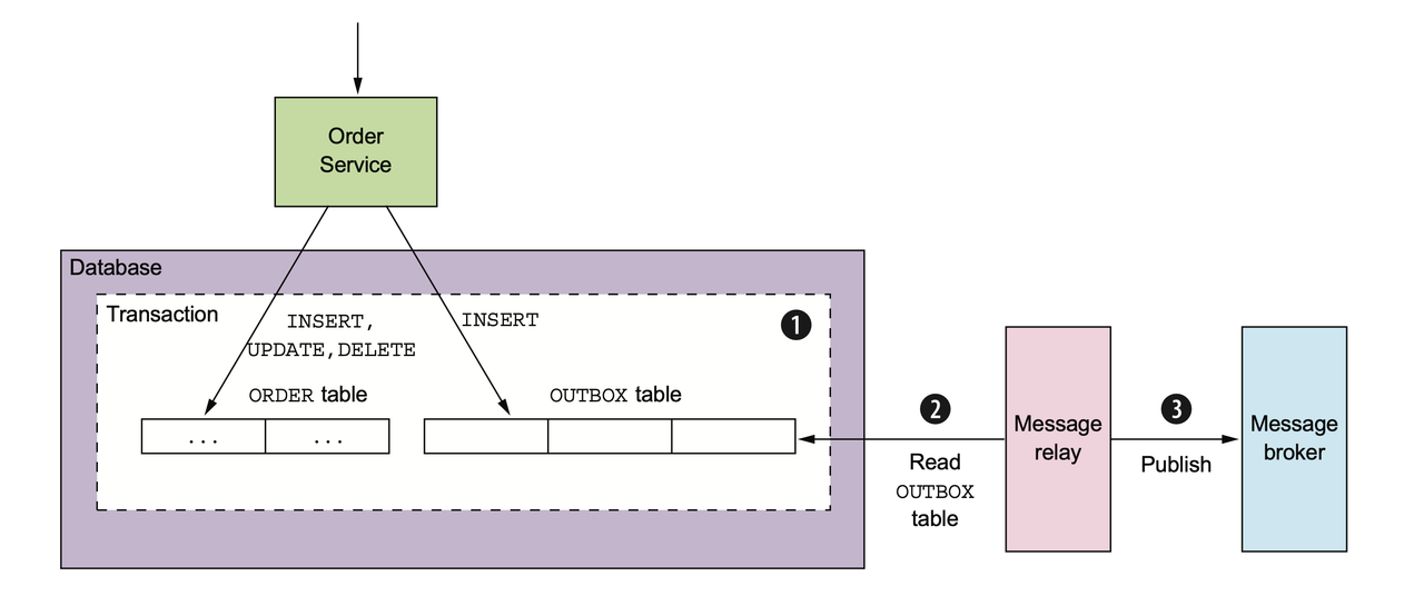 Transactional Outbox pattern is solving the problem of the implementation where usually the transaction tries to update the database table, then publish a message to the broker and commit the transaction. But here is the problem, if at the last step commit of the transaction fails, the transaction will rollback database changes, but the event has been already published to the broker. So we need to find a way how to guarantee both, database writing and publishing to the broker. The idea of how we can solve it is next: in the one transaction, save to the orders table, and in the same transaction, save to the outbox table, and commit the transaction. then we have to publish saved events from the outbox table to the broker, we have two ways to do that, CDC(Change data capture) tool like Debezium, which continuously monitors your databases and lets any of your applications stream every row-level change in the same order they were committed to the database, and Polling publisher, for this project used polling publisher. Highly recommend Chris Richardson Book: Microservices patterns, where Transactional Outbox pattern is very well explained.