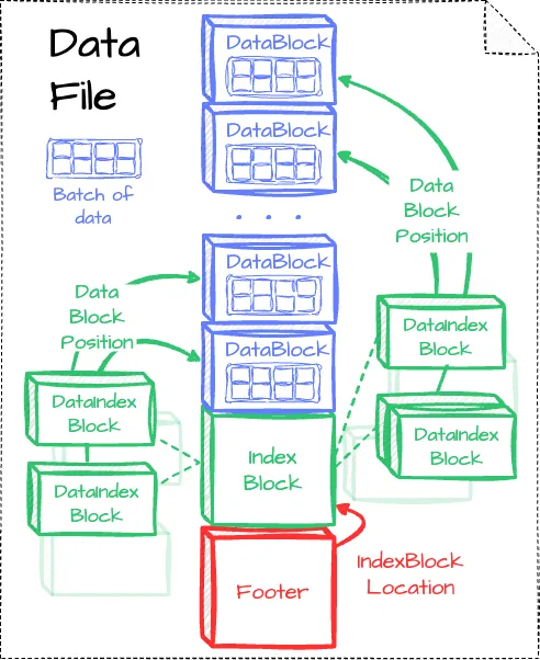 Finally, the Footer metadata block records information related to the IndexBlock’s data location.