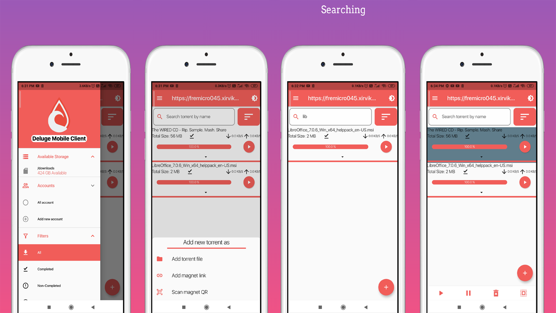 Note: The primary usage of this application is to control Deluge hosted on your seedbox account.
