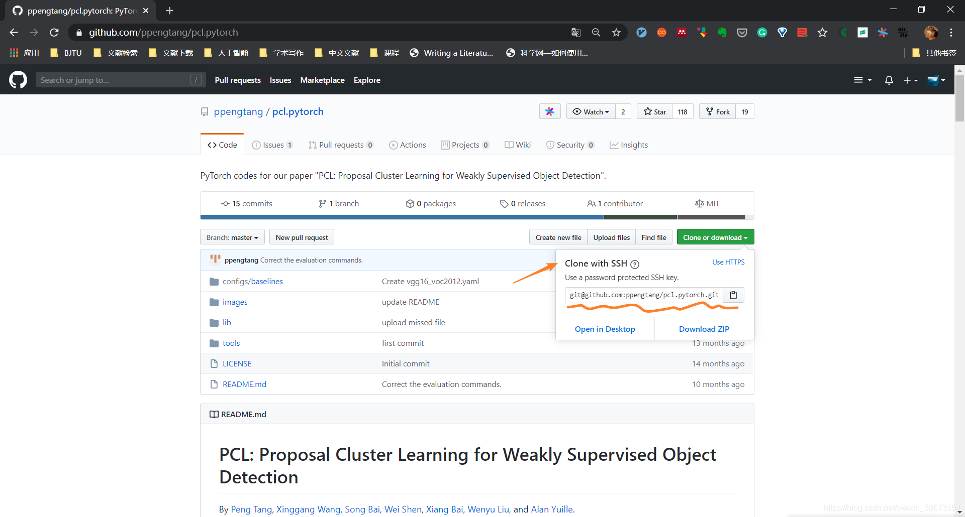 然后我们把仓库 clone 到本地,为了不输入账号密码,我这里用 SSH 的方法 clone。