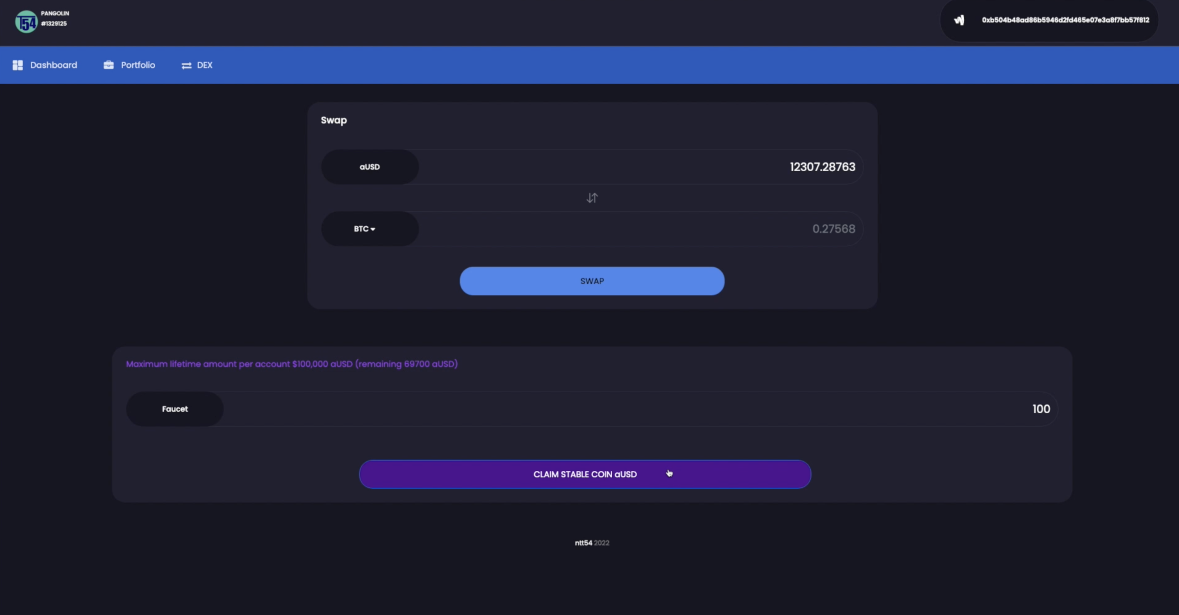 This is where the user can use the faucet to get some stable coins in his metamask Limit is $100,000 for the lifetime of any account
