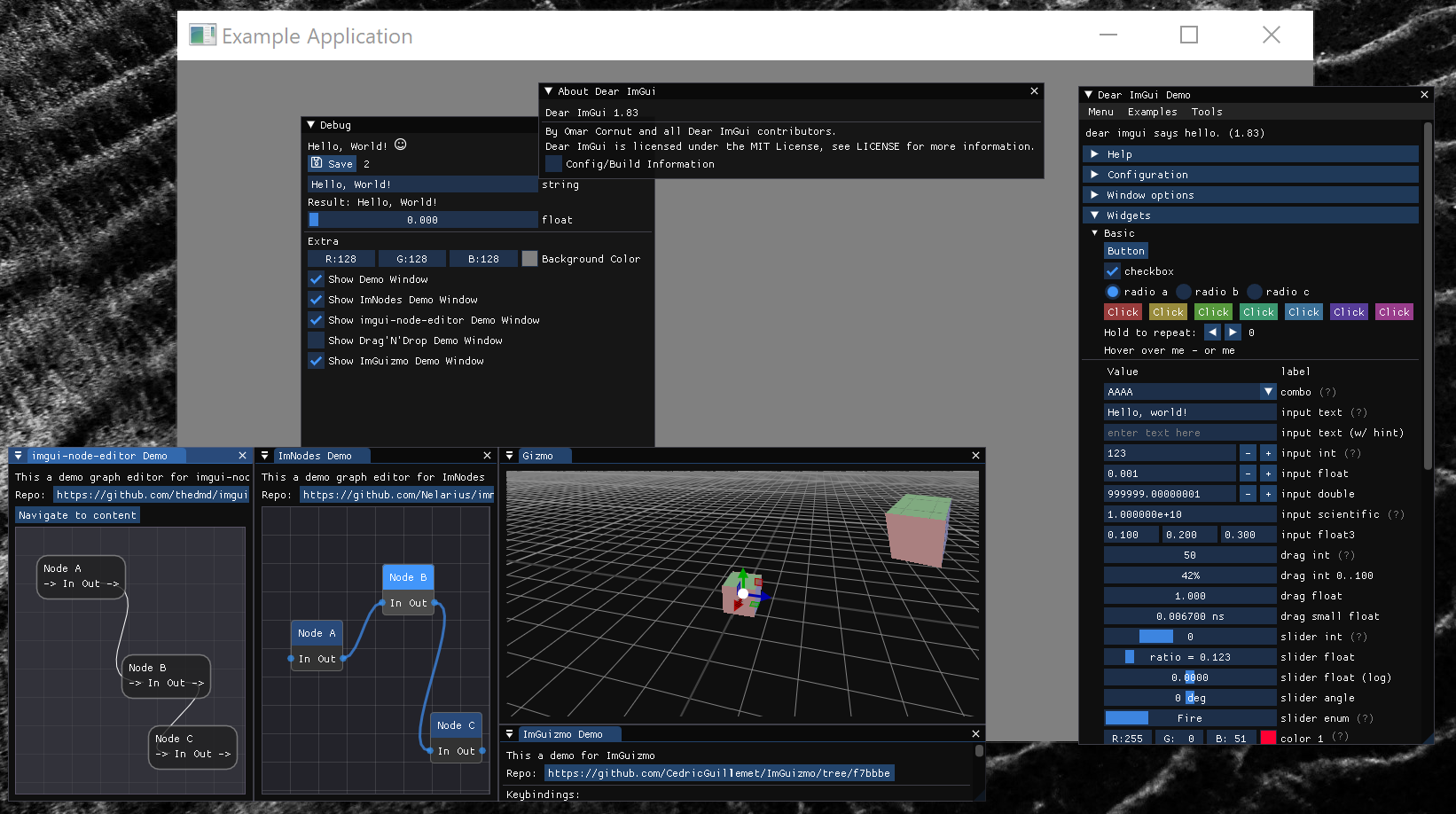 Node Editor using ImGui. (A bit more complex than ImNodes, but has more features.) - ImGuizmo | Example