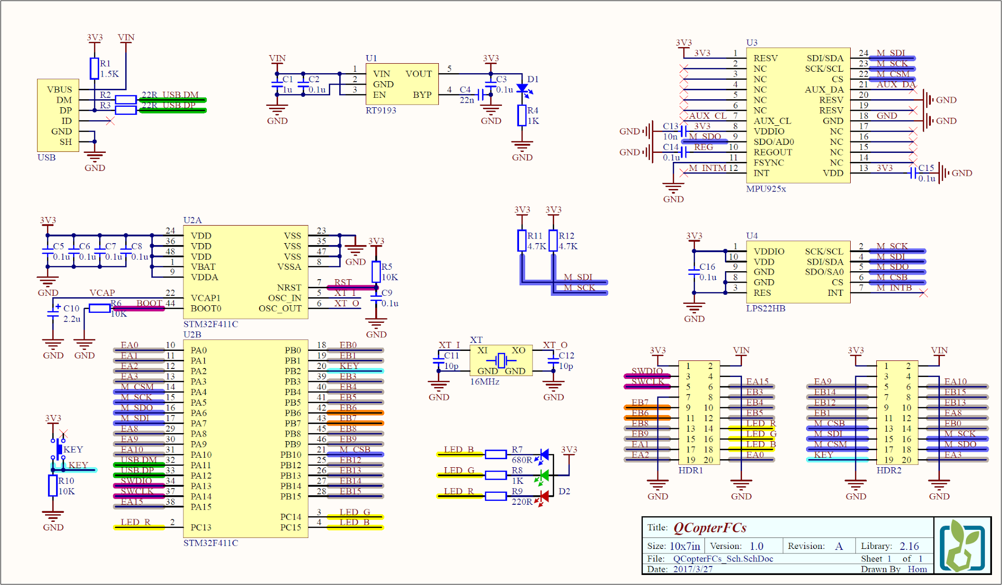 QCopterFC 是一個基於 STM32F4 的飛行控制器,主要用來實現濾波、平衡、控制等演算法的平台。集成微控制器 9 DOF 慣性測量元件以及氣壓計,目前有 QCopterFC 與 QCopterFCs 兩種版本,前者使用芯片效能較高、功能多、硬體完善,後者功能較為簡潔,以擴充方式實現不同需求,靈活度高。目前開發著重於 QCopterFCs,想了解 QCopterFC 的可以進入該分支 branche