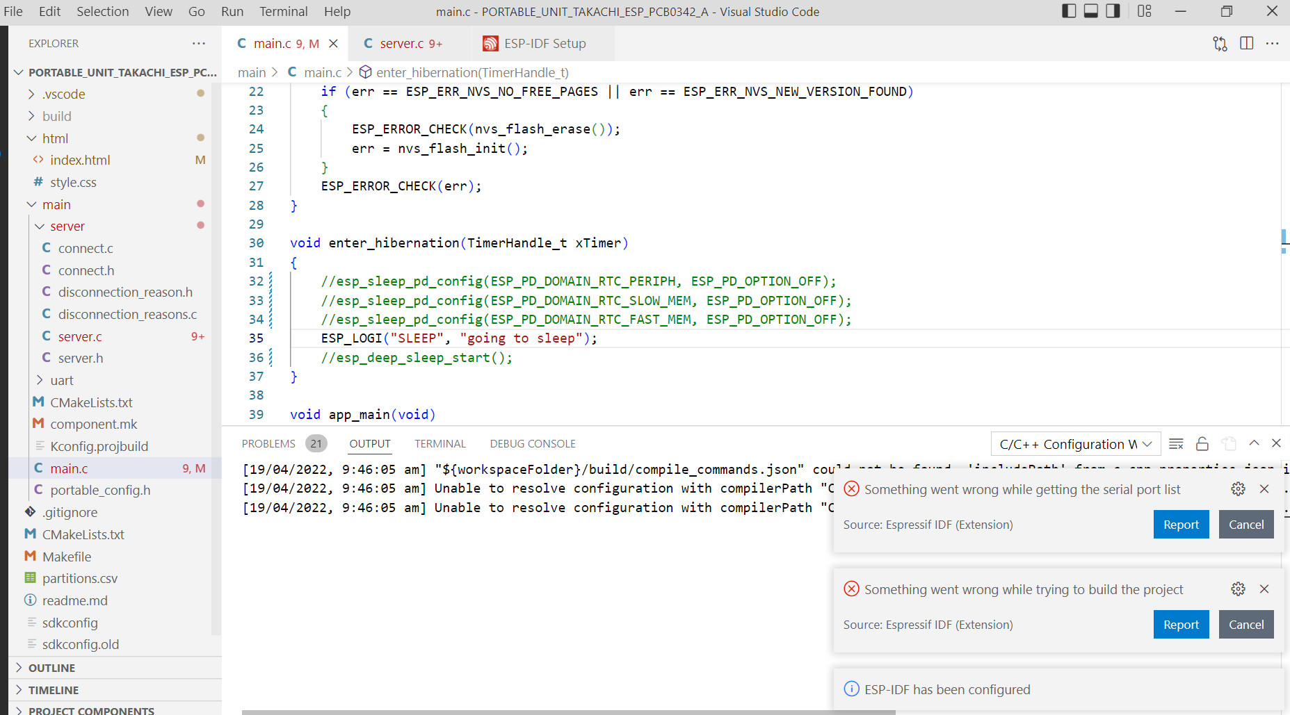 I used command configure ESP_IDF and ran EXISTING Configuration again, everything gets a tick and message"ESP-IDF" has been configured" but problem remains.