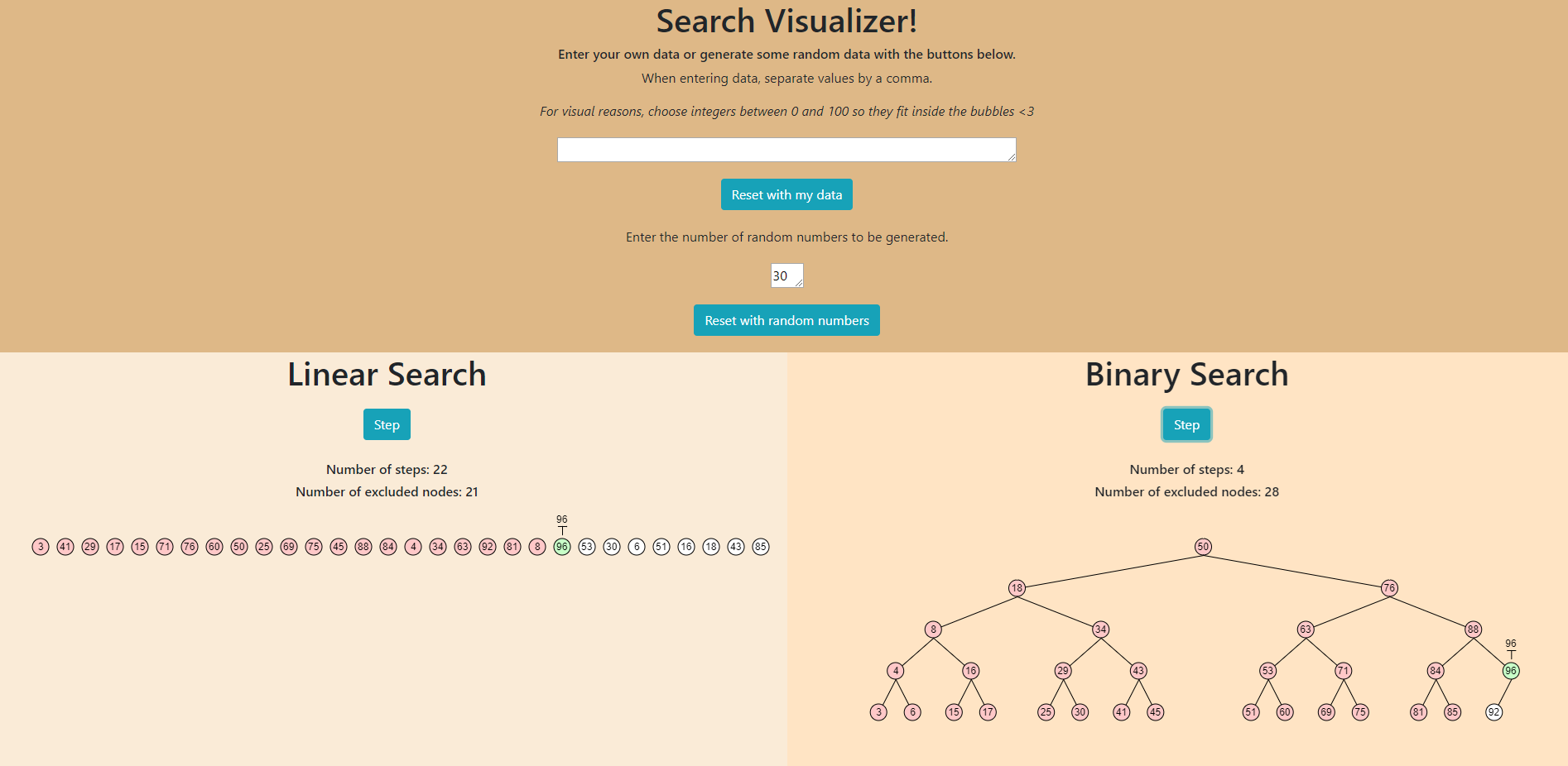 This is a little showcasing of why binary search is so much faster than linear search.