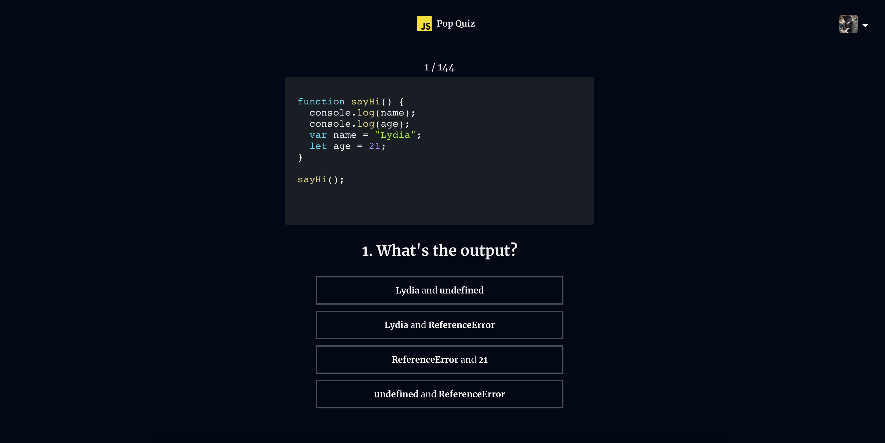 題目方面則是採用了之前上過 GitHub Trending 的 javascript-questions,截至目前為止 (2020/03/18) 共收錄了 144 道題目,一方面認為這是ㄧ份很不錯的文件,