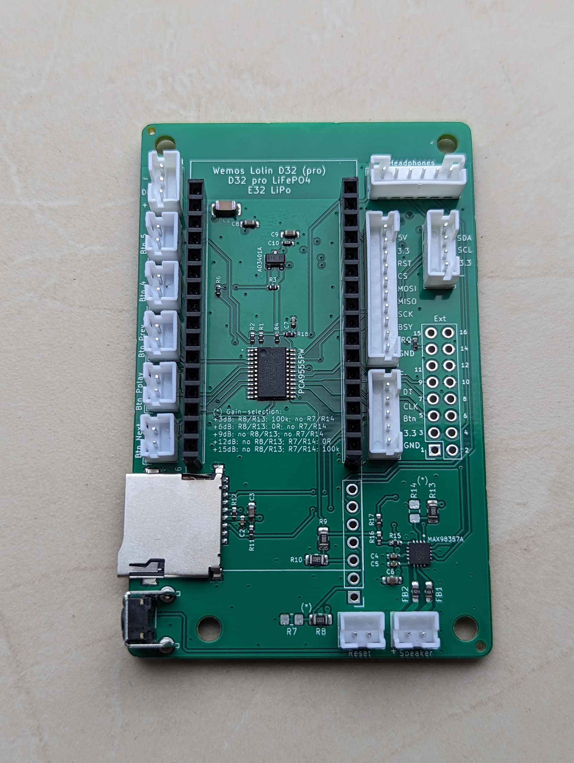 - MAX98357A: provides more power at 5 V but also runs at 3.3 V. Anyway: it's still loud enough (in my opinion).