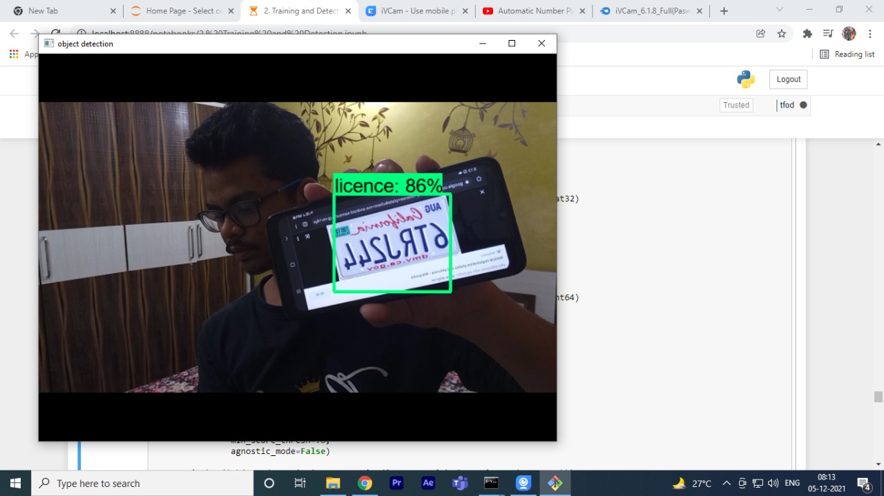 Its a demo video and images of my project based on TF which detects number plate through camera and saves the images IN .csv and Jpg format