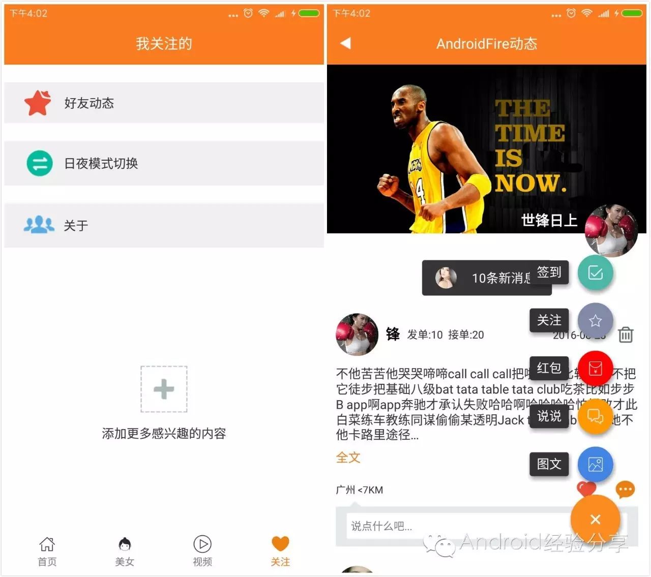 - 关注:包括朋友圈、日夜模式切换(无需重启界面)功能