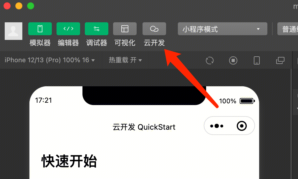打开微信开发工具,点击上方「云开发」按钮,开通云开发