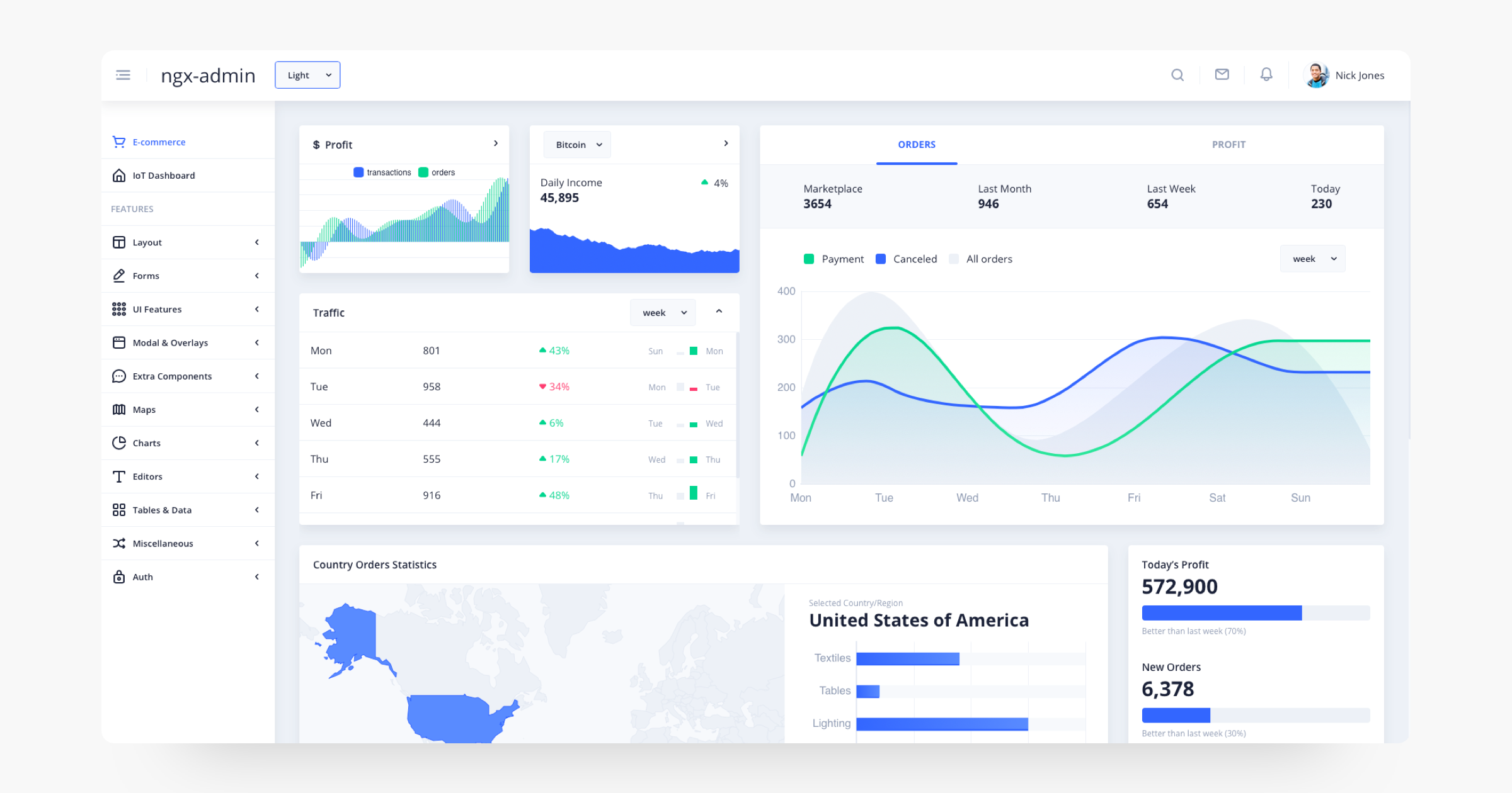 Material admin theme is based on the most popular Angular dashboard template - ngx-admin