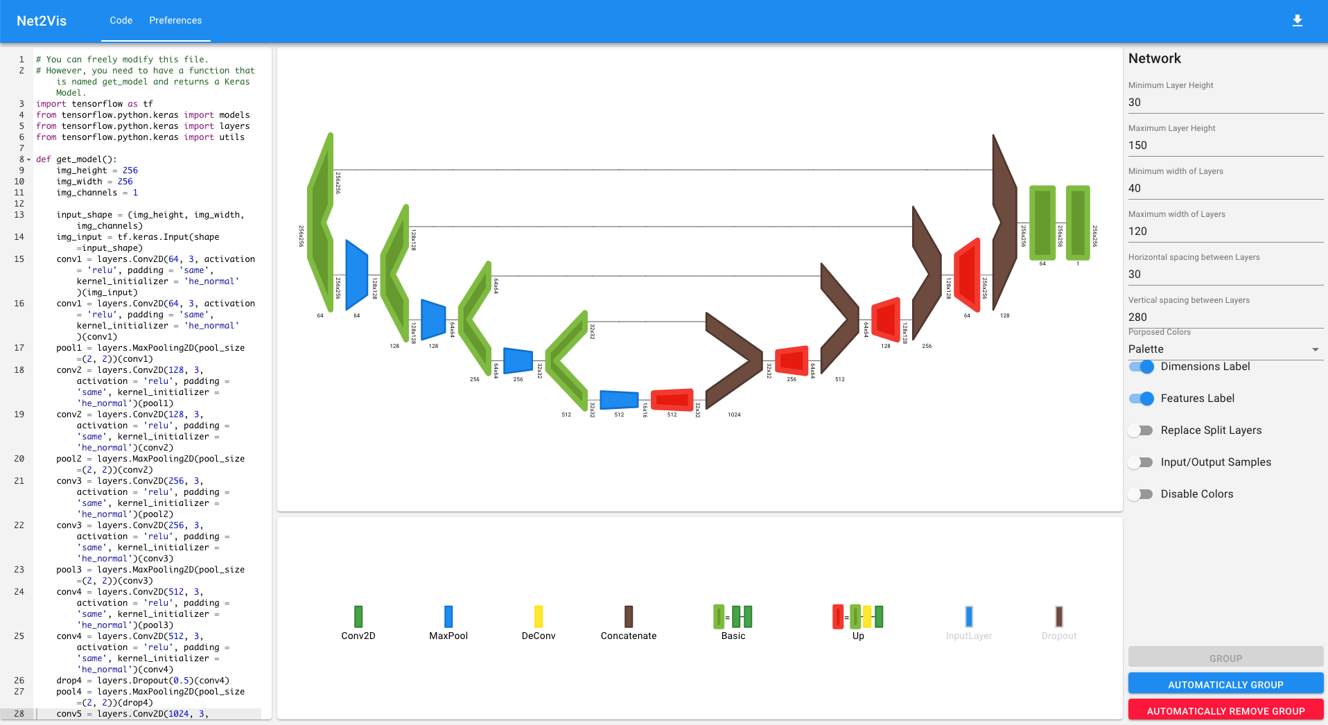 Net2Vis automatically generates abstract visualizations for convolutional neural networks from Keras code.