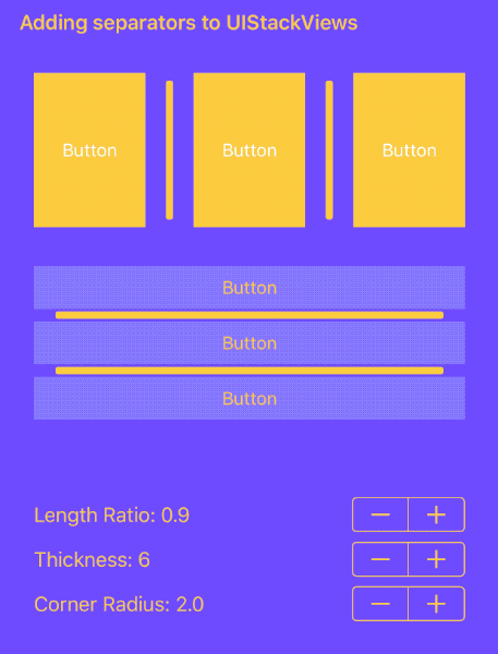 pod 'StackViewSeparator'Thickness, Corner Radius, Percent, Color can be set