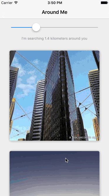 photos that where made near to you. It's using Instagram API to fetch photos, MapView for displaying location on the map and Animated for simple animations.