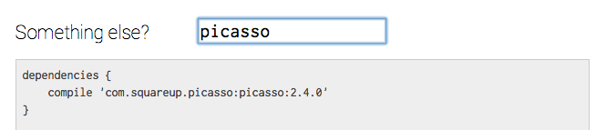 }You can also add dependencies based on the Maven Central Repository. The best tool for finding packages is actually the Gradle Please utility that takes care of helping you locate the correct package and version to add to your gradle file for any library: