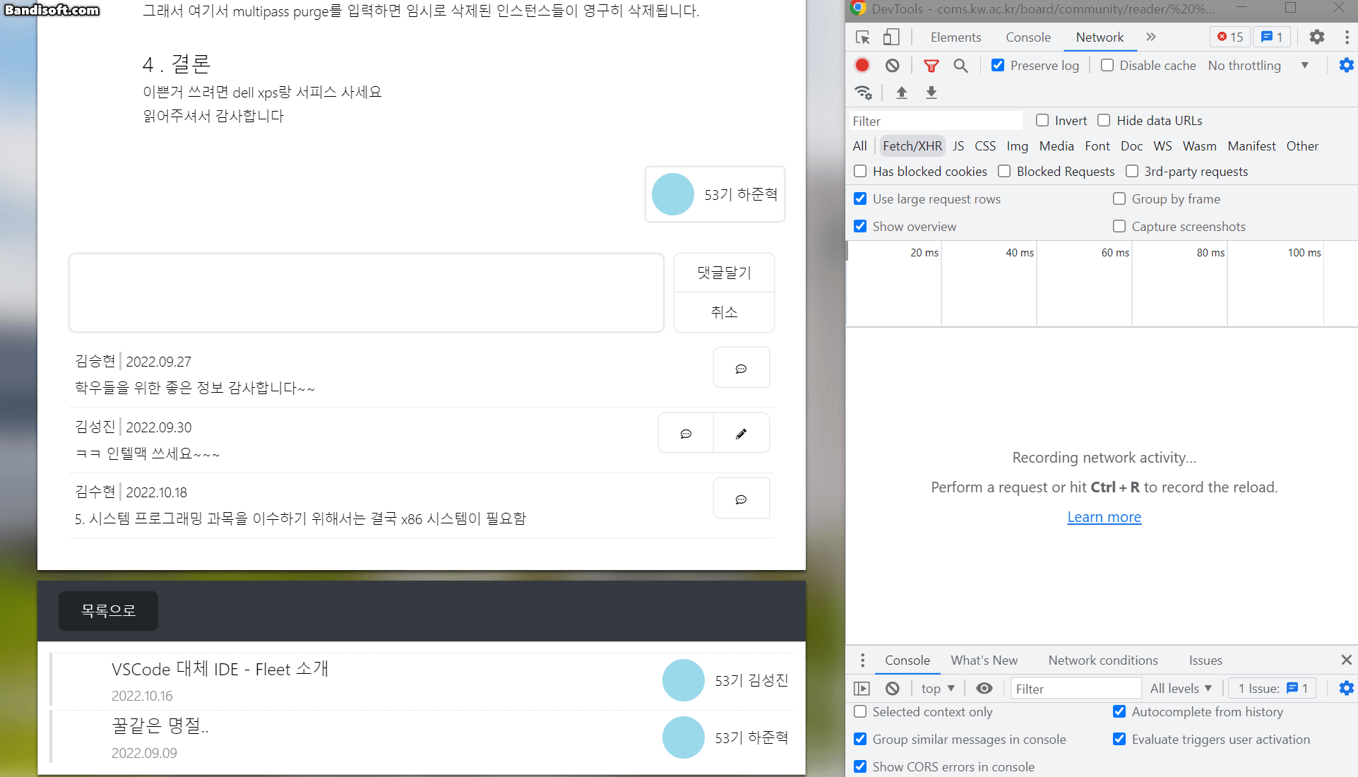 위 이미지와 같이 댓글에 답글을 달 때 400 에러가 납니다 ㅠㅠ
