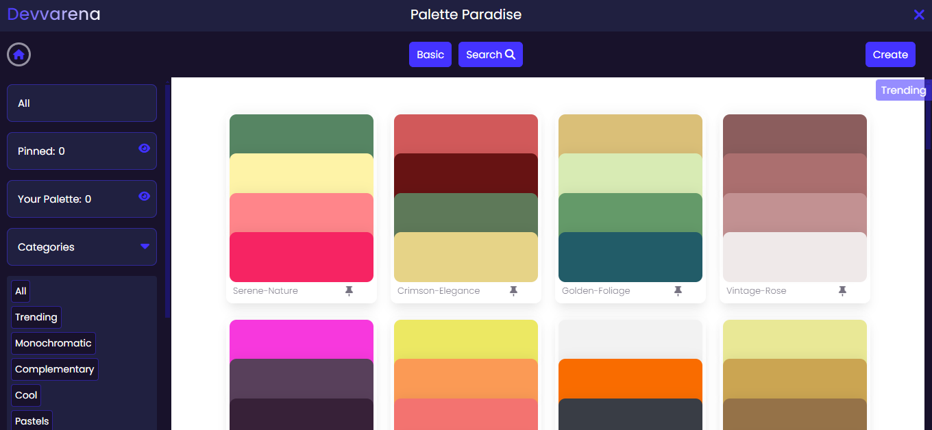 Manages color palettes for web designs with more than 100 palettes of different categories.