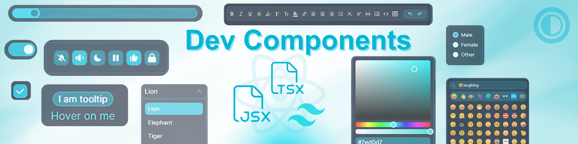 Dev Components, is a unique platform providing fully customizable React components in TSX/JSX, seamlessly styled with Tailwind CSS. Unlock productivity and efficiency with our ready-to-use, highly flexible UI elements.