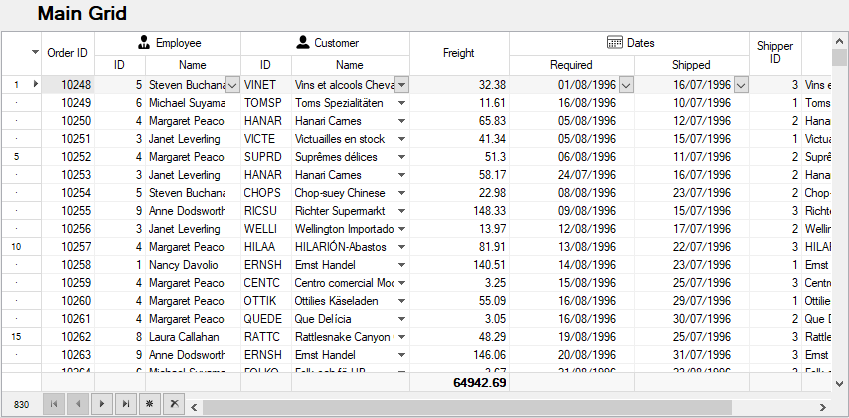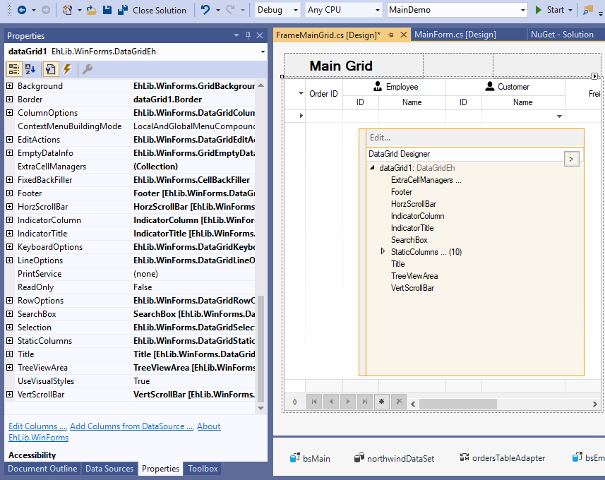 MainDemo - the main project. Demonstrates the visual capabilities of the library when creating an application for working with tabular data.