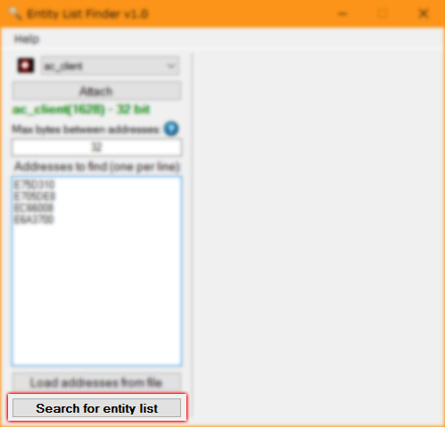 4. Put the player/enemy/object base address to find, one per line. This number is in HEX.