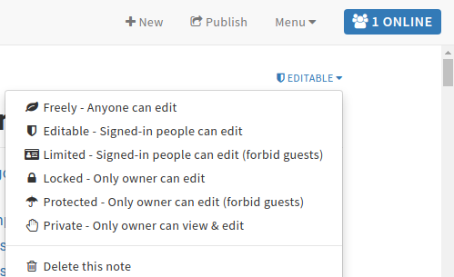 When in markdown Edit only mode, any note's permissions do not display to modify. It would be better to include it in the site's header menu. So that it is available in each of the three modes and scrolling.