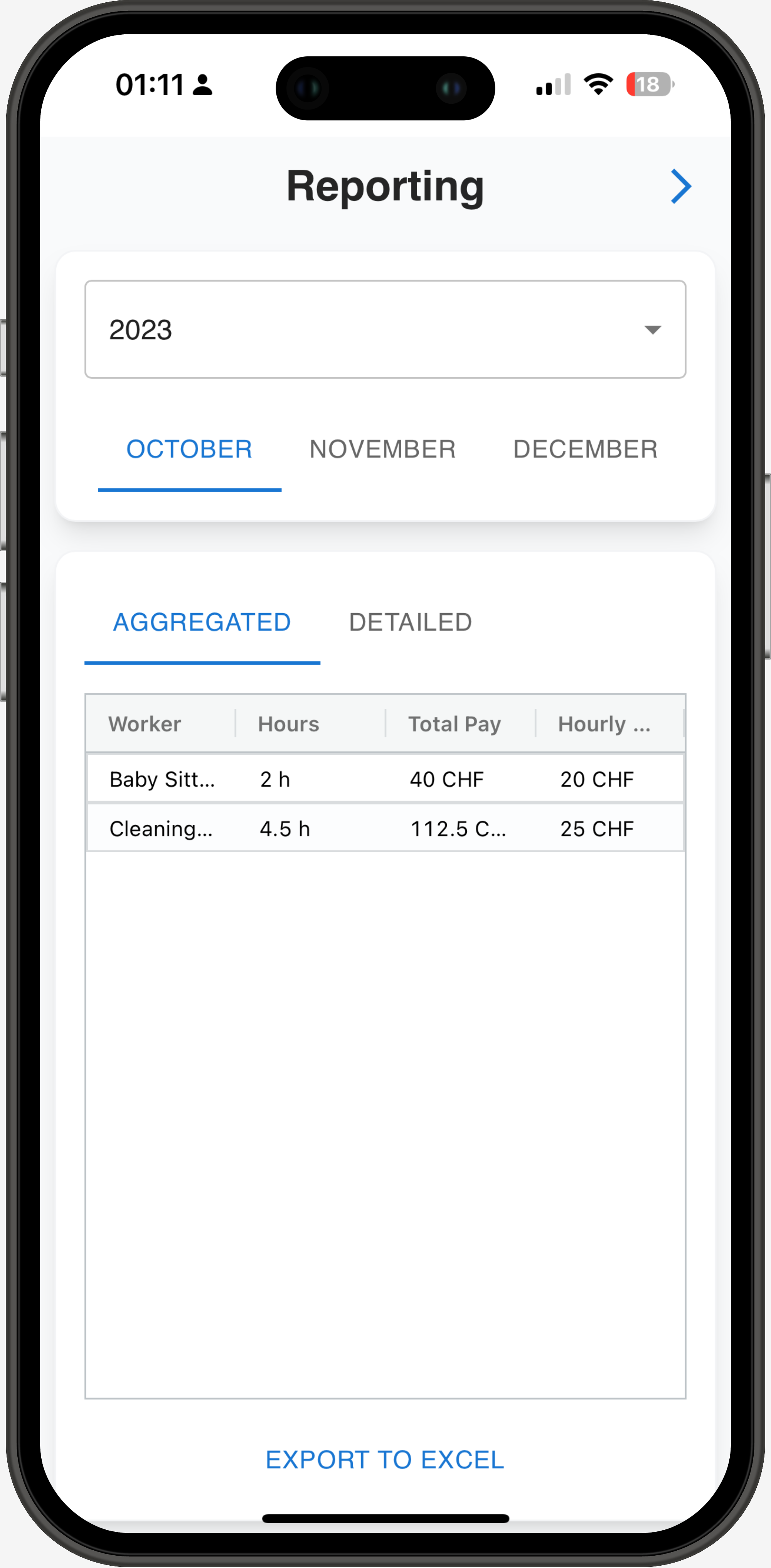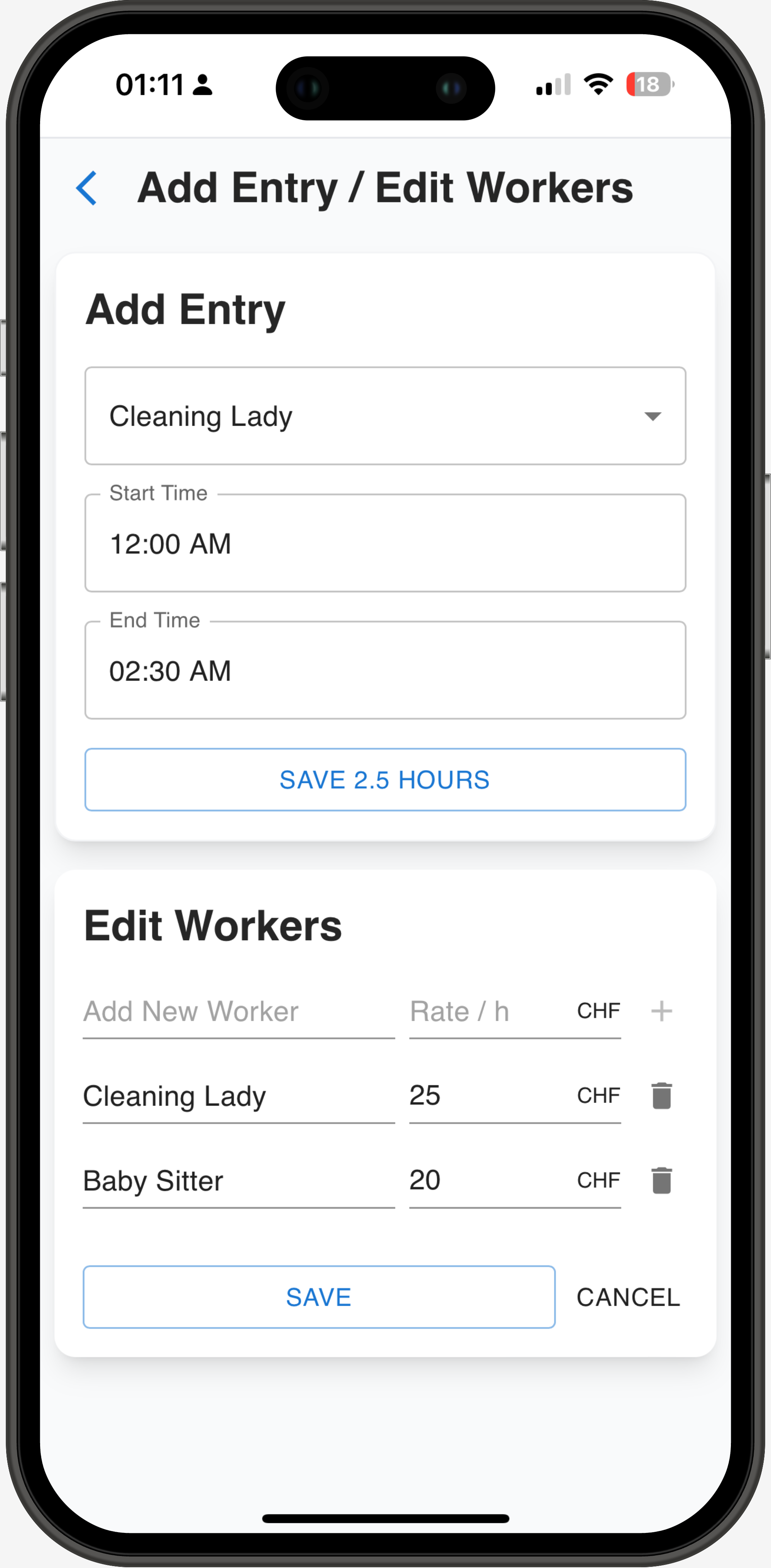 A simple app to log workers hours and export reports into excel The goal is to help personal accounting with an easy to use interface. 0 tracking. Everything is stored on localstorage.