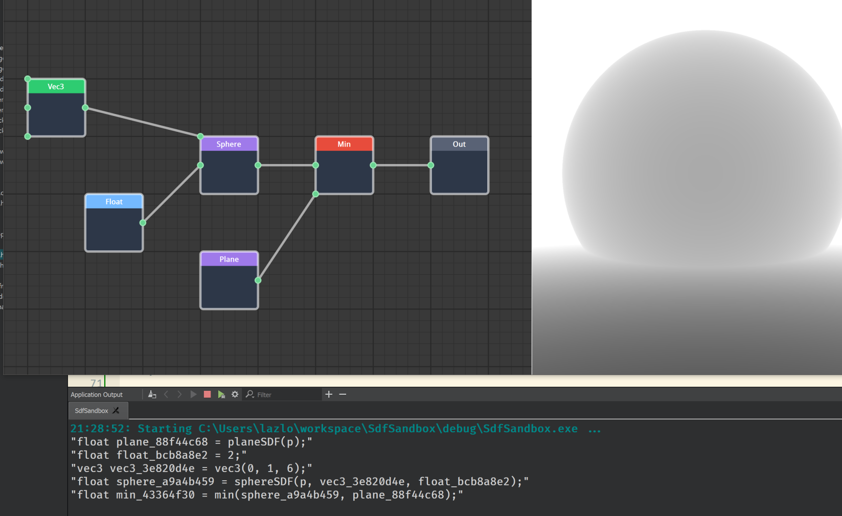 This is work in progress... very experimental. The end goal is to recreate Happy Jumping by iq entirely with nodes. This is invalid, just testing sockets and connections at the time. Heh.