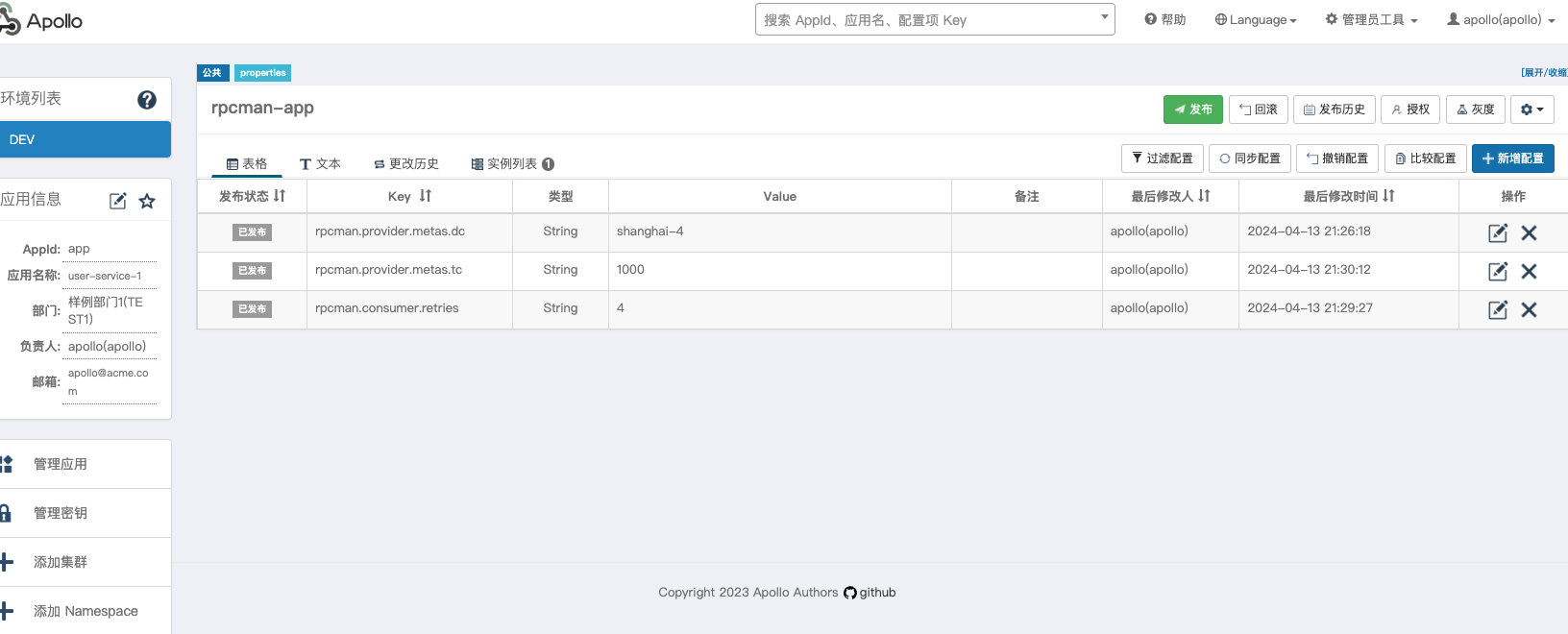 启动后, 通过访问 http://localhost:8070 ,进入Apollo 管理端