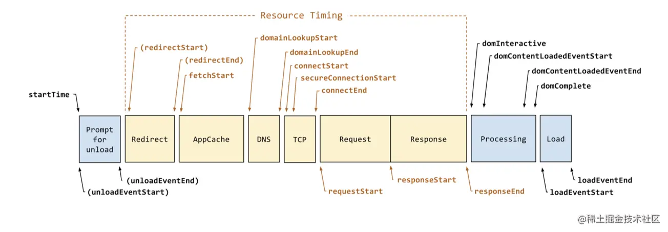 - TCP连接耗时、首字节到达时间、response响应耗时、DOM解析渲染的时间、TTI、DCL、L等可通过performance.timing获取