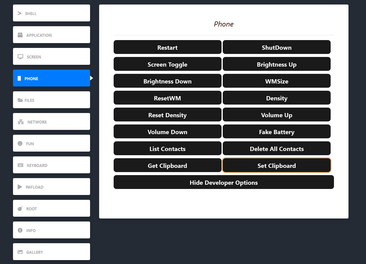- Device : resetwmsize | wmsize | densiysize | resetdensity | screen | shutdown | restart