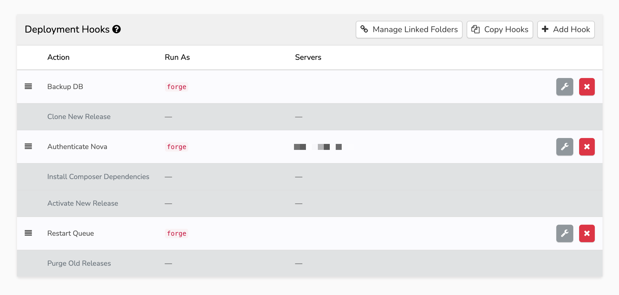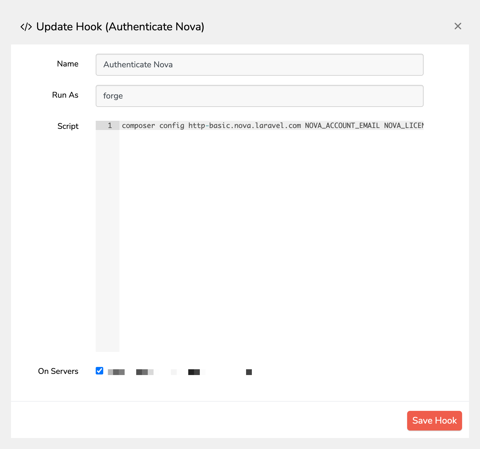 In Envoyer, you can create a new hook to authenticate Nova: Something similar to this: |