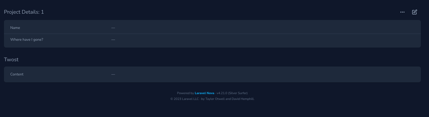 In 4.22.0 you can do the following: Panel::make('Twost', [