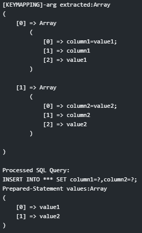 # Processing includes escaping the values (prepared-statements).