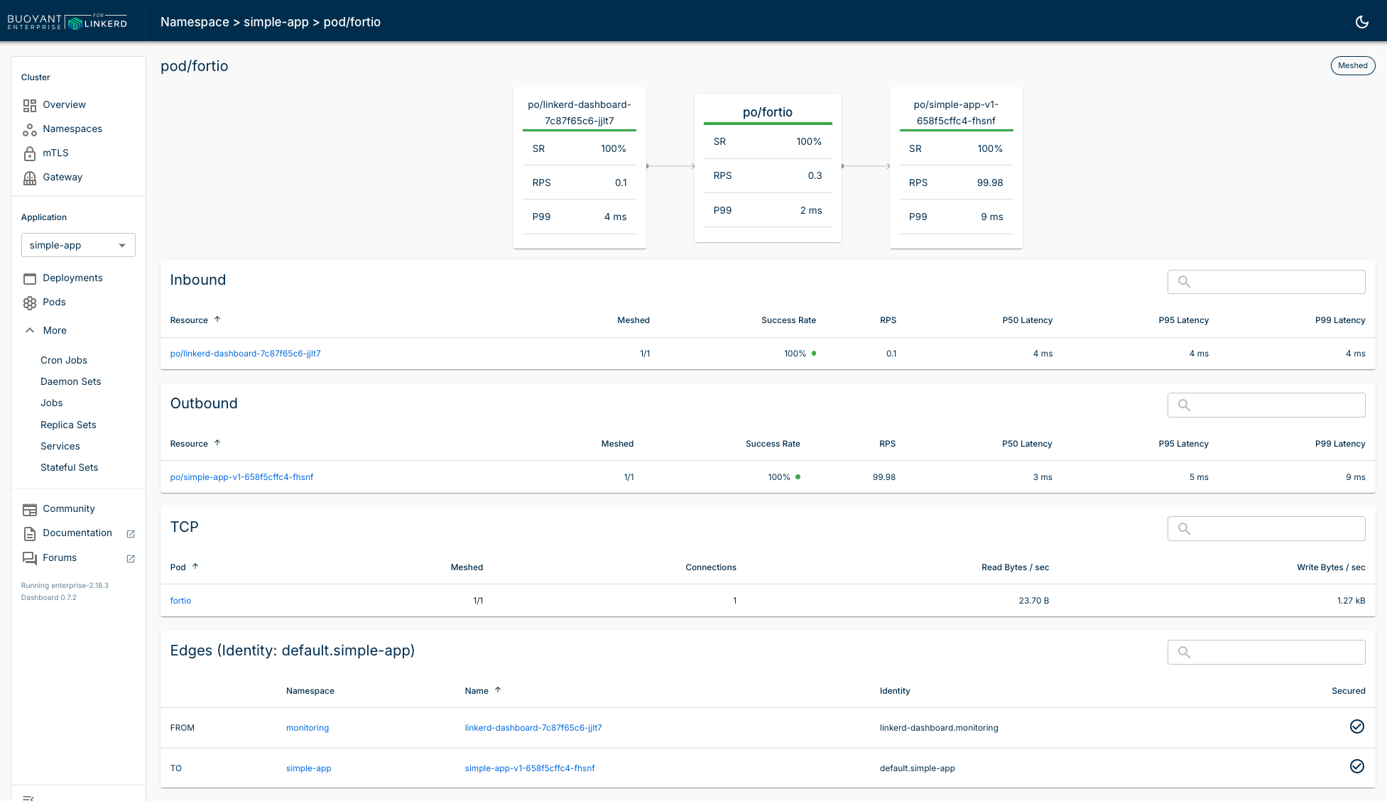 For convenience, I used the Linkerd Dashboard to visualize the traffic:
