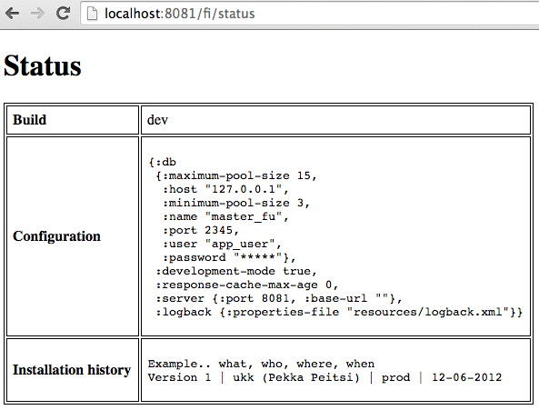 Then you can try the front page: http://localhost:8081 The status page should respond at: http://localhost:8081/fi/status