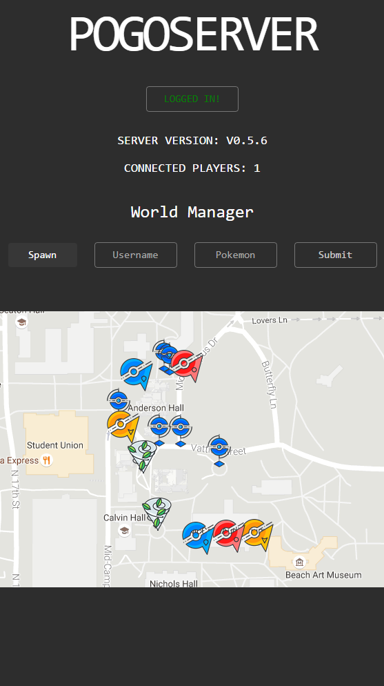 cd /POGOserver/and enternpm run boot. - Connect the Pokemon Go app to the server.