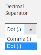 Decimal separator: Select a symbol to separate the integral and decimal value.