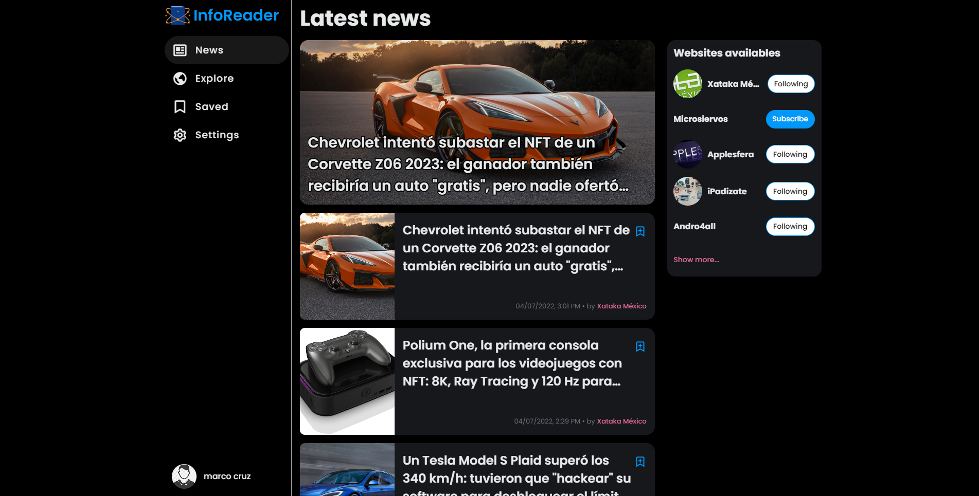 This is a web application that allows you to read technology news, using RSS feeds from different sources and saving them in a database. It also allows you to create a user account and save your favorite news.