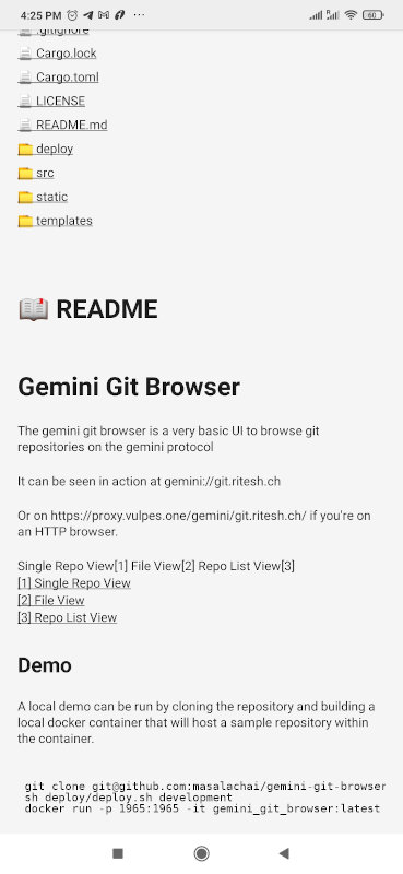 The gemini git browser is a very basic UI to browse git repositories on the gemini protocol