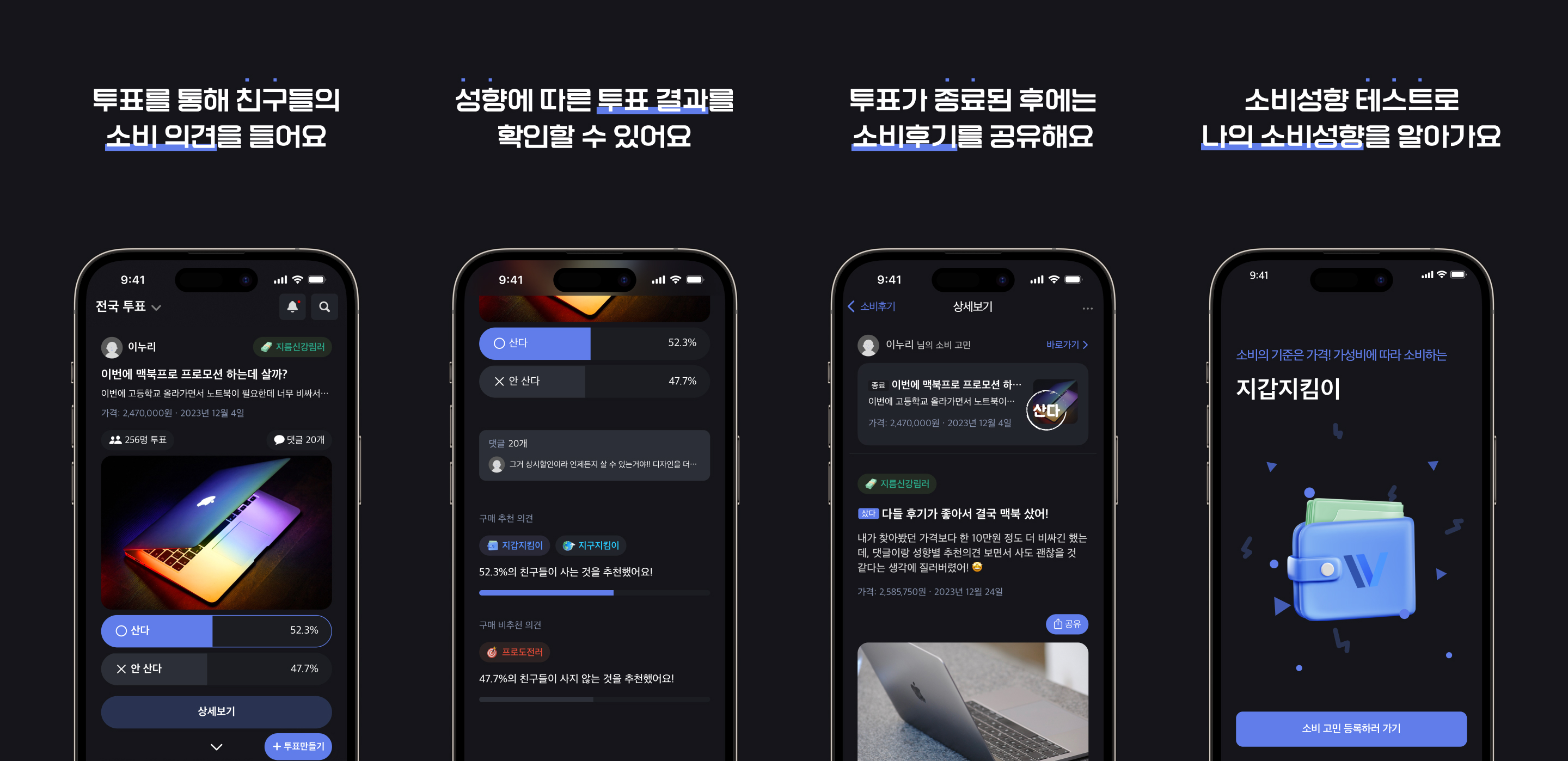 ์ฒญ์๋ ๋ค์ด ๋๋ ์น๊ตฌ๋ค๊ณผ ํจ๊ป ์๋น ๊ณ ๋ฏผ์ ๋๋์ด ํฉ๋ฆฌ์ ์ธ ์๋น๋ฅผ ํ ์ ์๋๋ก ๋๊ณ , ํ์ธ์ ์๋น ์ฑํฅ์ ํ์ธํ๋ฉฐ ๋ณธ์ธ์ ์๋น ๊ฐ์น๊ด์ ํ๋ฆฝํ ์ ์๋ ์ปค๋ฎค๋ํฐ ํ๋ซํผ ์ฑ์ ๋๋ค.