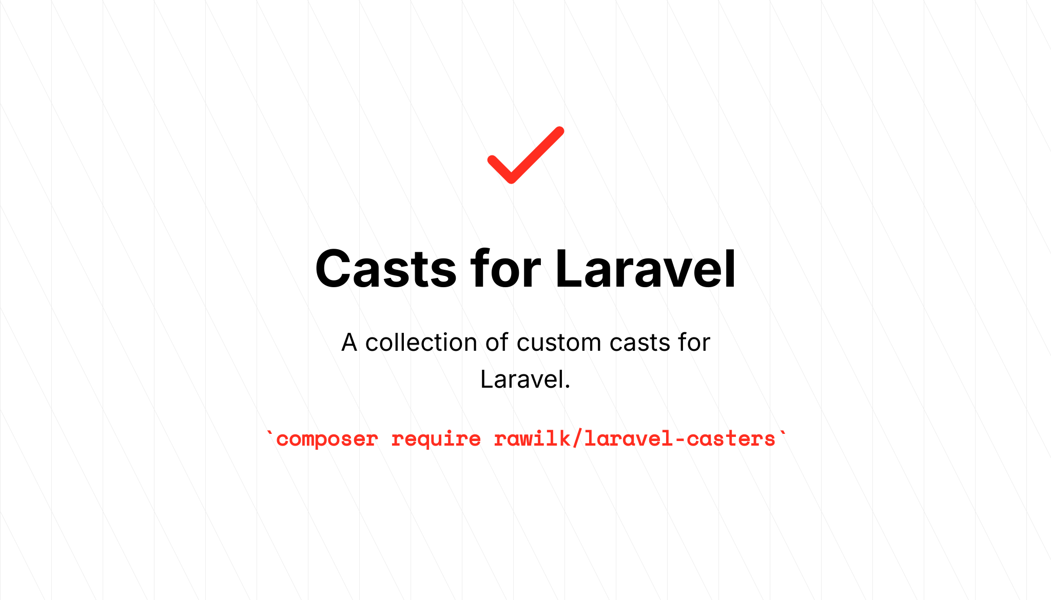 Casts for Laravel is a collection of custom class casts for Laravel Eloquent Models. This package allows you to quickly and easily add casts for names and hashing passwords on your user models.