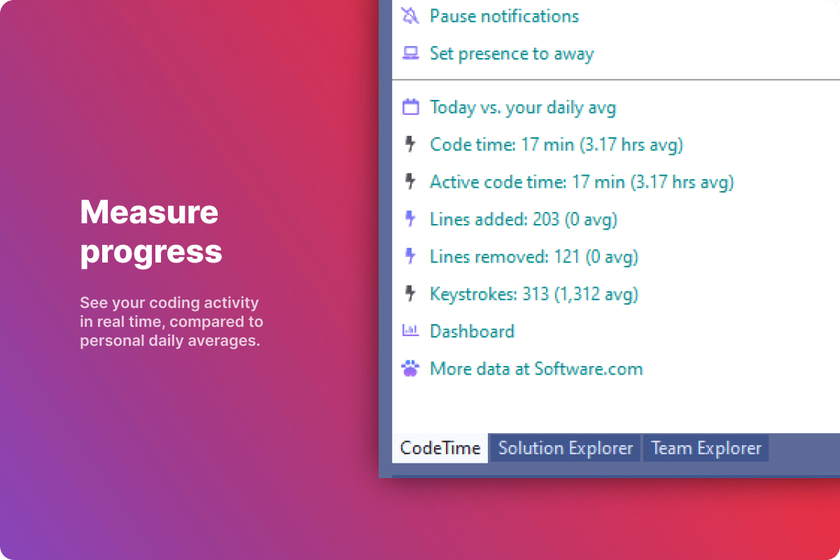 Join our community of over 150,000 developers who use Code Time to reclaim time for focused, uninterrupted coding.