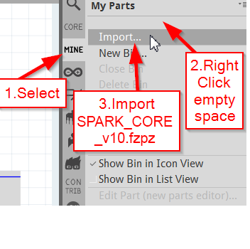 - Click Import and select "SPARK_CORE_v10.fzpz" from the