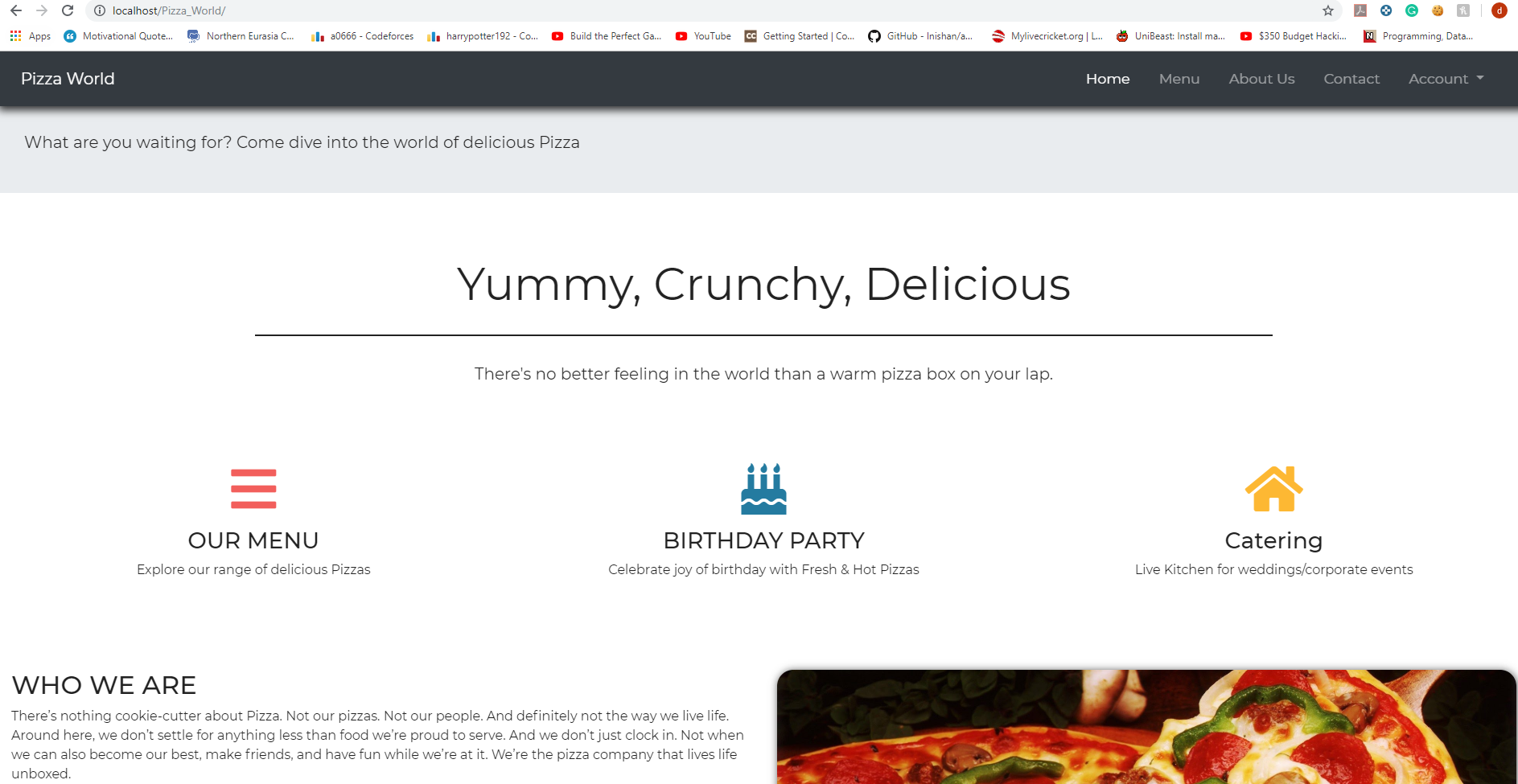 4)Now Open the Homepage of website by going to the url:http://localhost/Pizza_World/