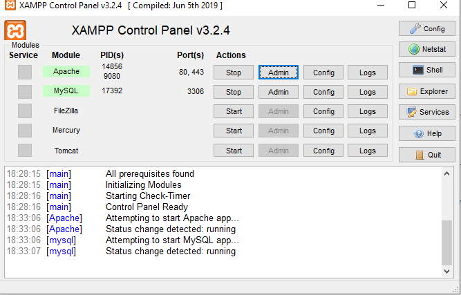 2)Now Run The Xampp Server using Starting Apache and MySQL