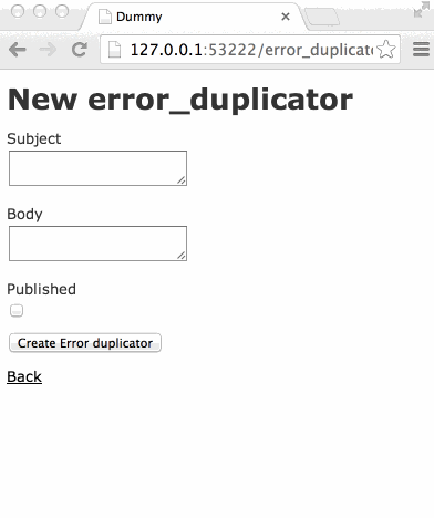 rails generate scaffold ErrorDuplicator subject:text:uniq body:text published:boolean