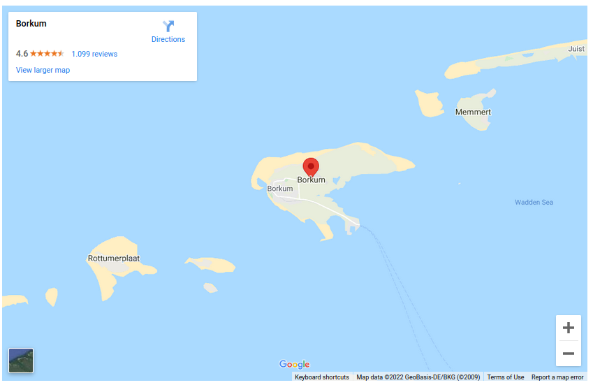 [:GOOGLEMAPS address="Borkum, Germany" :]- with zoom