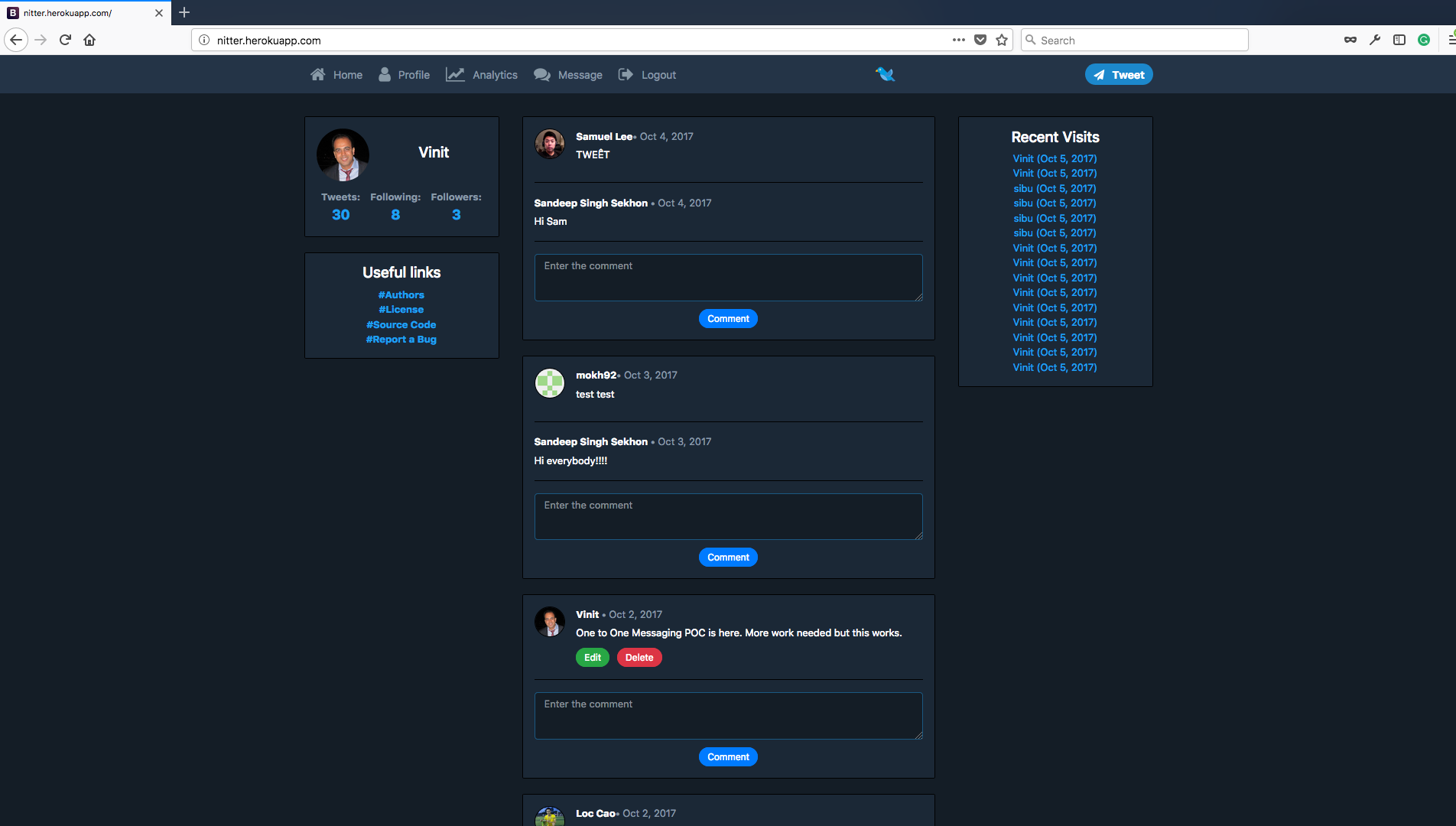 Node twitter is an effort to rewrite some of Twitter's functionality using modern javascript based toolchain. It was mostly an effort to learn Node.js and trying to reverse engineer some of twitter's feature.